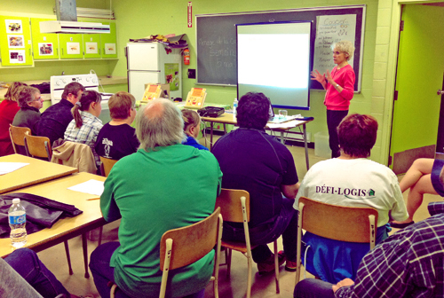 En février 2015, nous avons présenté JE CUISINE AVEC DES IMAGES à un groupe de jeunes adultes à L’Écrit Tôt, un organisme sur la Rive-Sud qui oeuvre depuis plus de 20 ans dans le domaine de la littératie, pour accompagner des adultes et des familles dans les apprentissages de base en lecture, écriture et calcul.